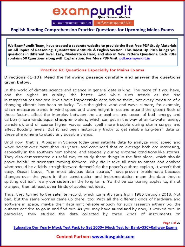 Expected Reading Comprehension Questions Pdf For Mains Exam
